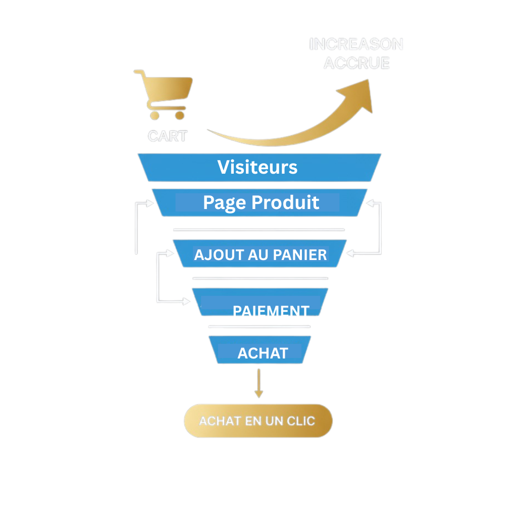 Parcours d’achat optimisé avec upselling automatique, checkout en 1-clic, abandons de panier récupérés à 65%