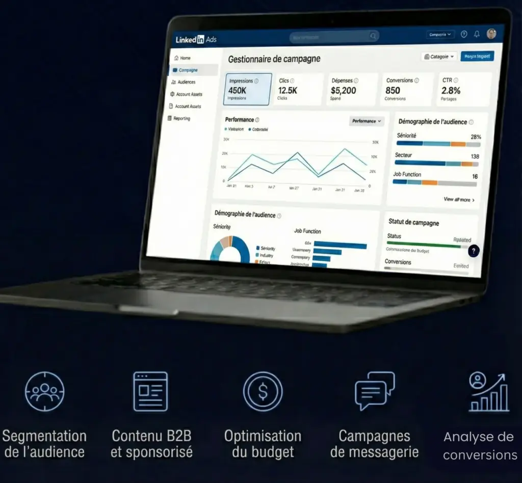 Nous exploitons l’ensemble de l’écosystème LinkedIn, comportements, interactions et signaux décisionnels,