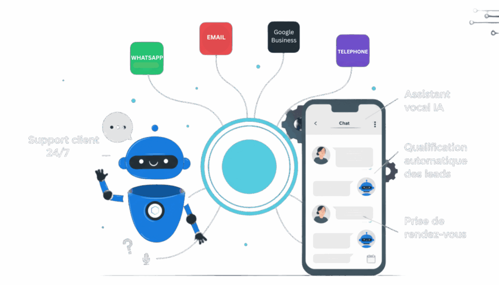 Support client 24/7 qui comprend, qualifie et convertit. Vos prospects deviennent clients même la nuit.