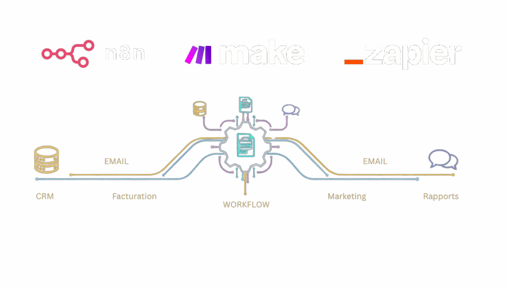 Transformez votre PME. Chaque tâche répétitive devient un avantage concurrentiel automatisé grâce a n8n make et zapier