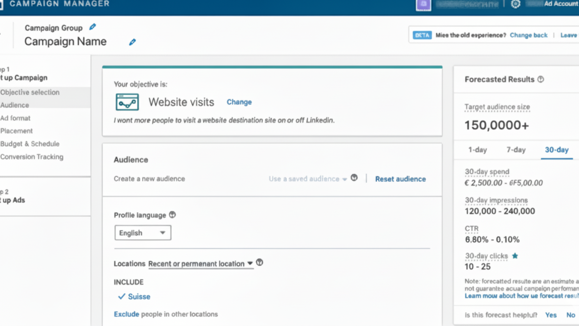 Oui, malgré un CPC (cost per click) plus élevé (5–8 CHF), LinkedIn Ads permet :