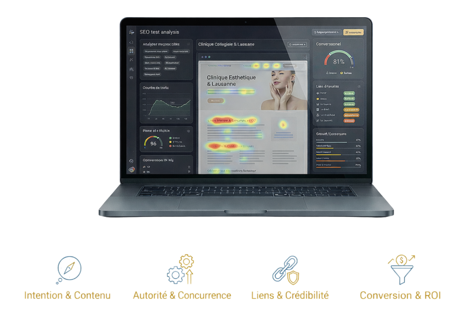 Vous identifiez précisément ce qui empêche votre référencement à Lausanne de produire une acquisition qualifiée. Décalages entre intention et contenu, manque d’autorité, signaux inefficaces : tout est mis en évidence, sans interprétation ni approximation.